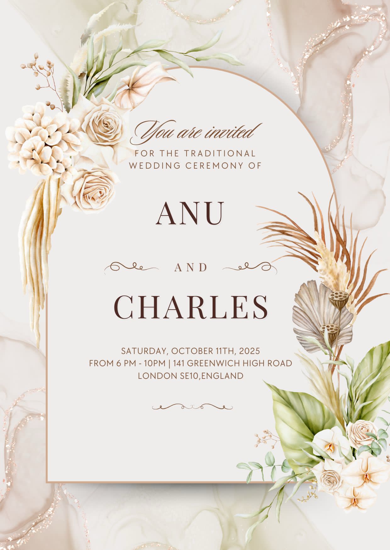 As autumn paints London in golden hues, Anu & Charles will step into forever on October 11, 2025. At 141 Greenwich High Road London SE10, England, where romance lingers in the air, they’ll exchange vows surrounded by loved ones, turning moments into memories. This isn’t just a wedding – it’s the beautiful collision of two souls who found home in each other. May their love continue to grow, just like the joy they bring to everyone around them.